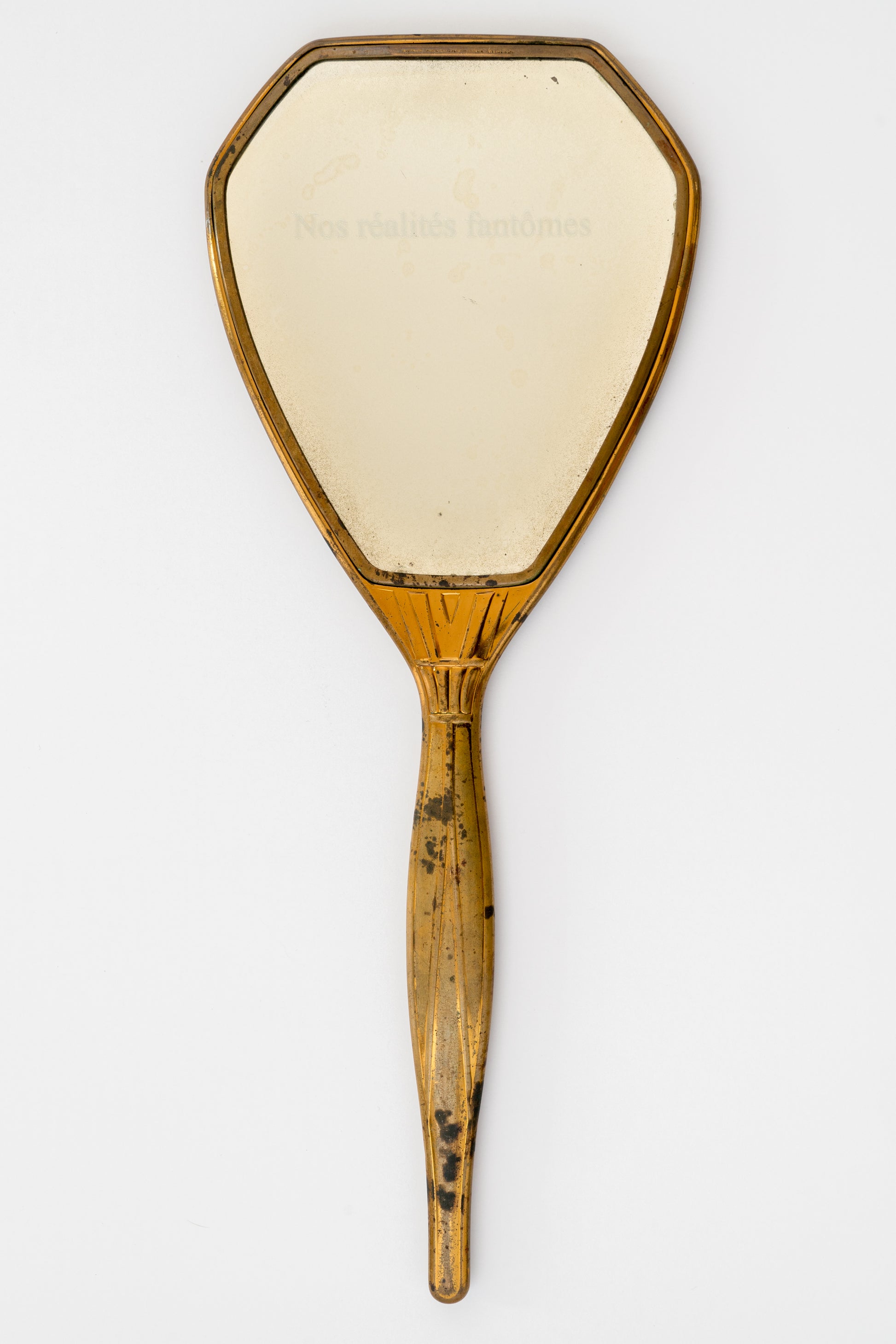 Objet tiré de la série "Rencontre" (2020-à maintenant). Le spectateur est amené à manipuler les miroirs pour ainsi découvrir et lire les diverses pensées et poésies faisant écho à son reflet. Intimes et universelles, ces pensées plongent le spectateur dans un questionnement sur lui et l'autre.