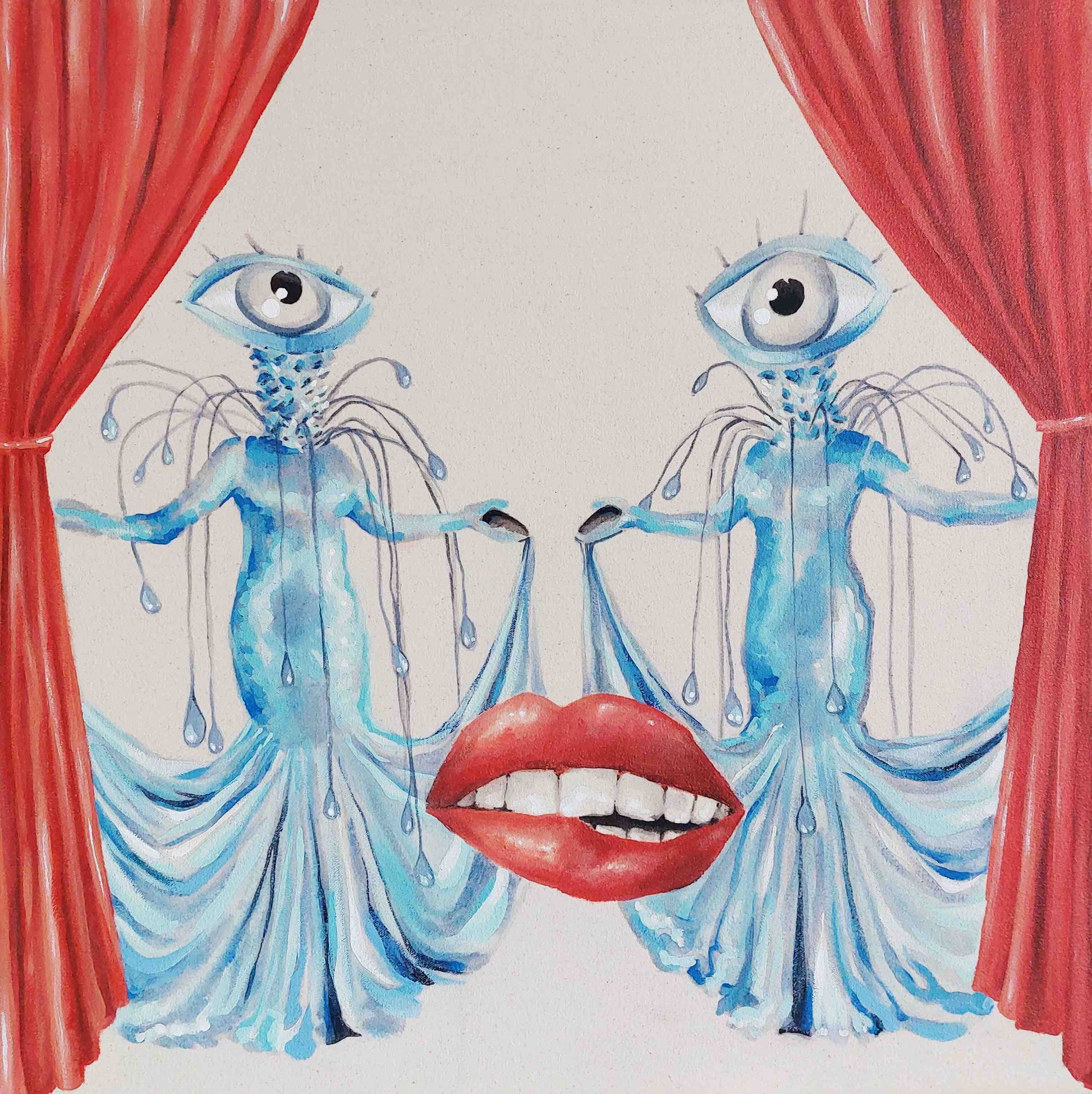 Hands, masks and curtains merge. A faces appear, theatre becomes a living illusion.